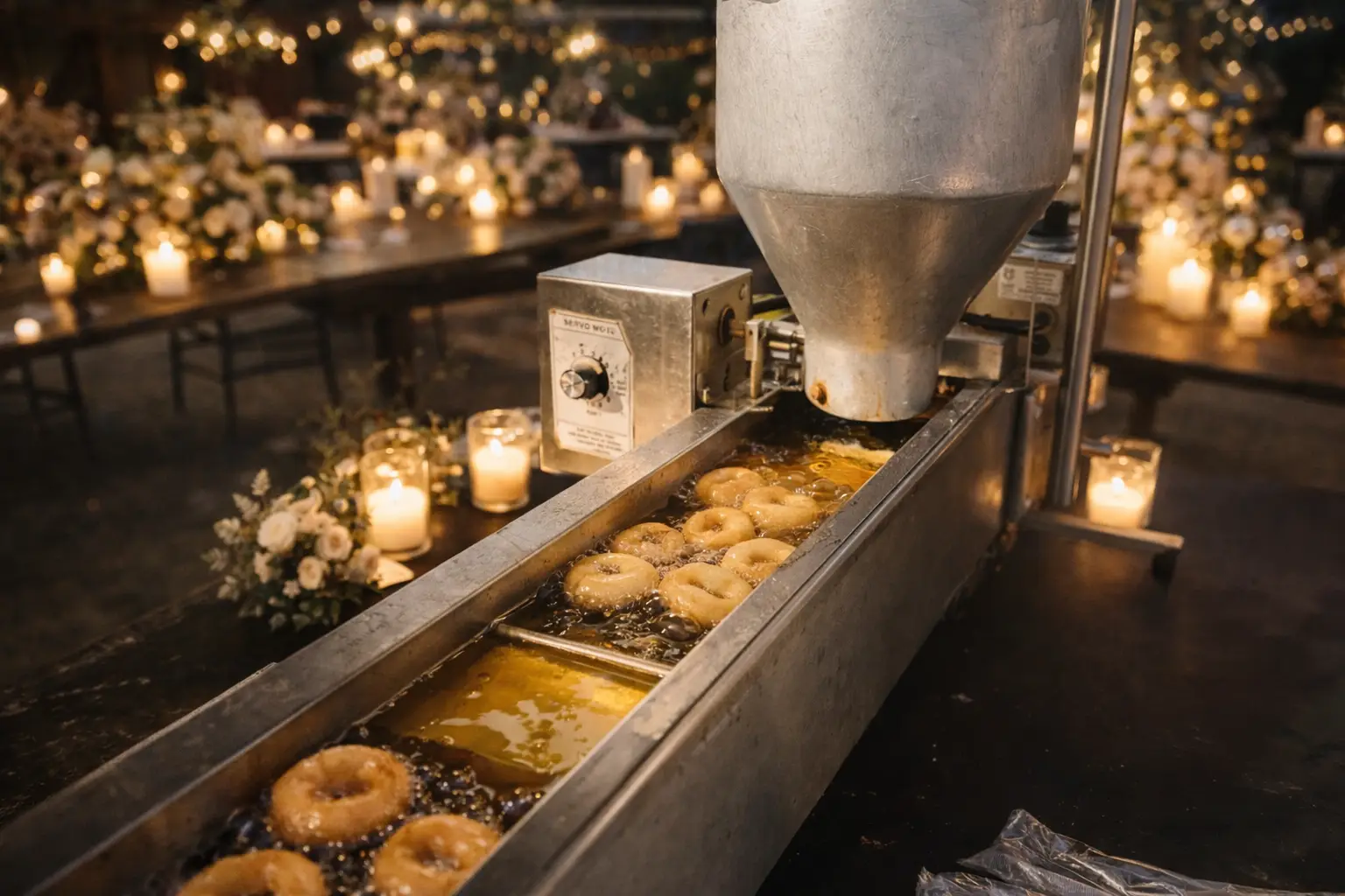 A real live mini donut factory at your party is a great way to have an interactive dessert attraction that guests will love.